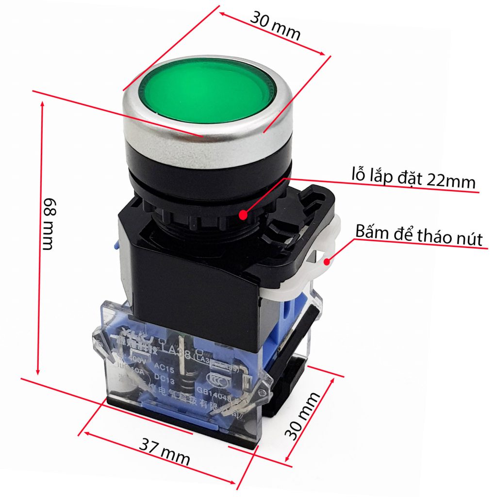 Nút nhấn nhả có đèn LA38-220V phi 22